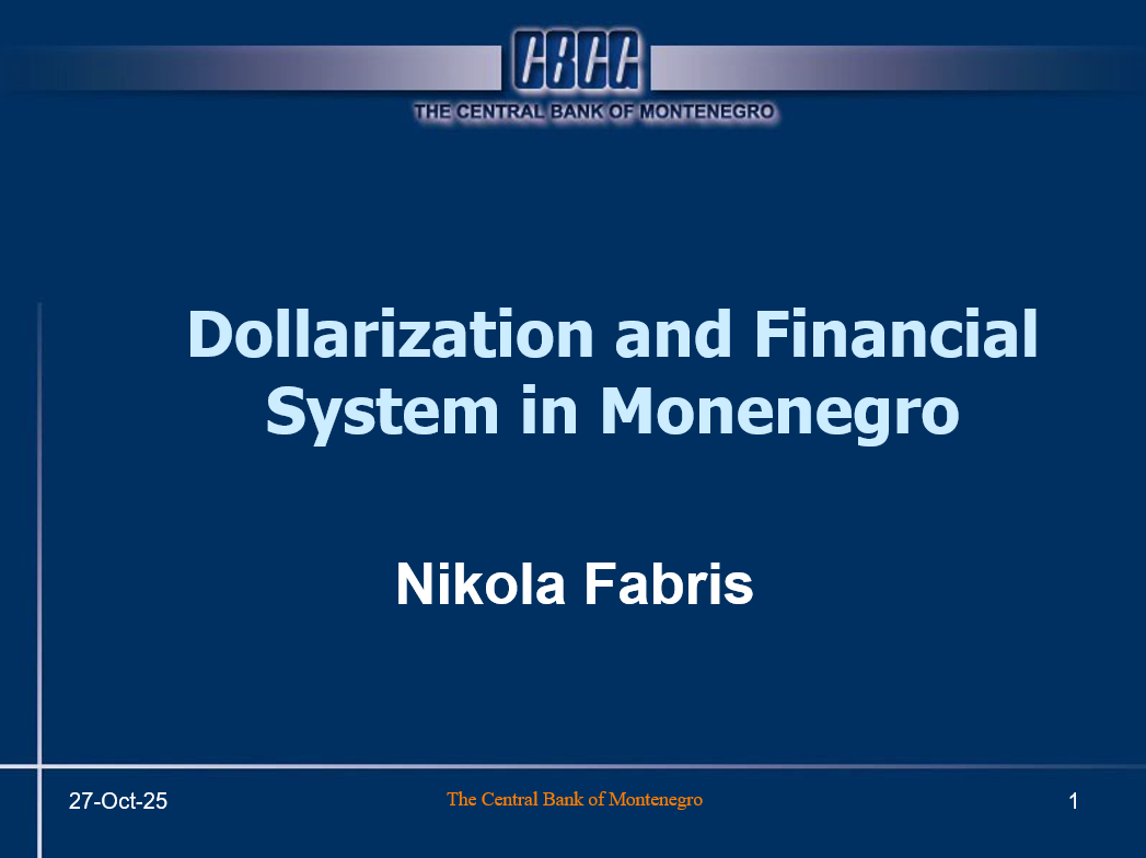 Prof dr Nikola Fabris (Vice-Governor of the Central Bank of Montenegro, Full Professor at the Faculty of Economics and Business, University of Belgrade) will give a lecture on Dollarization and the Financial System in Montenegro.